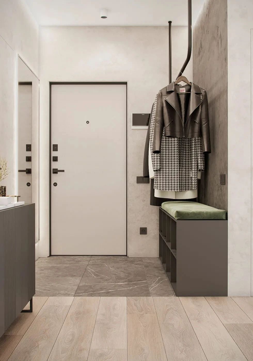 浅色的木质地板与复古绿的软饰相对比,交织成一片柔和温润的宁静空间。