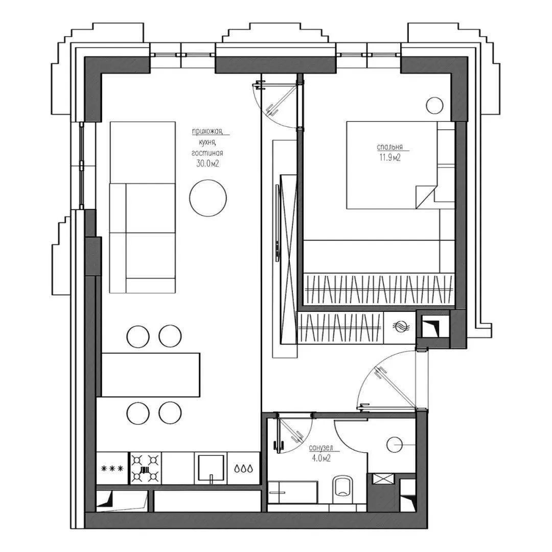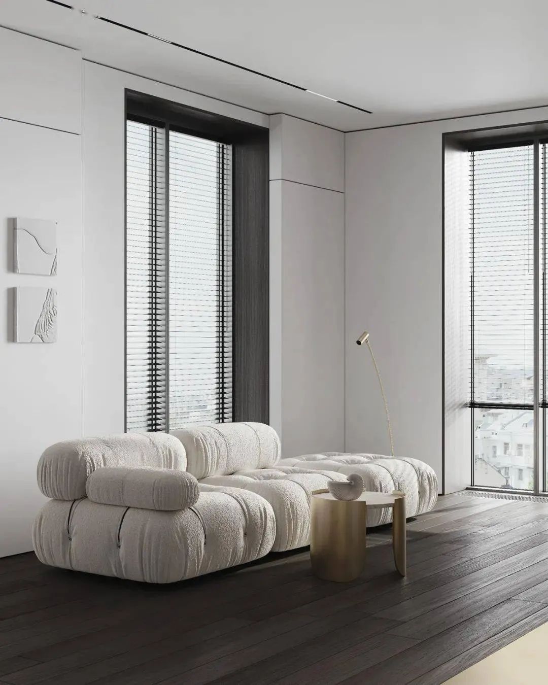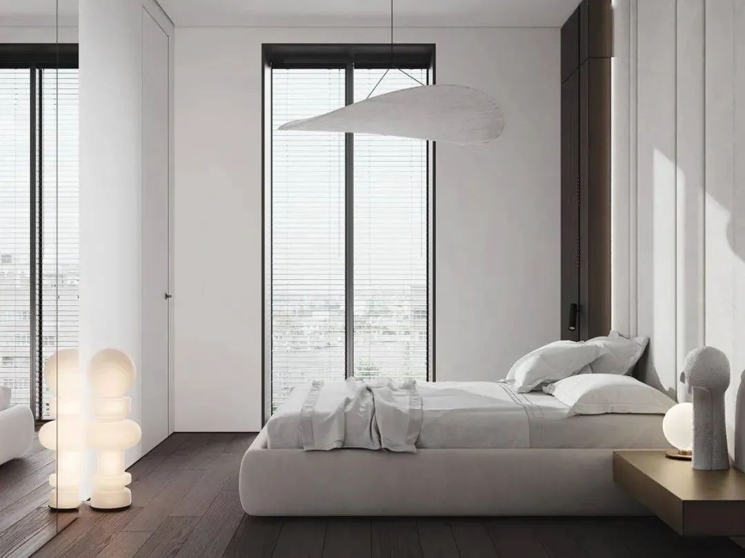 空间以白色调为主,通过用多种轻奢感十足的元素来对空间进行装饰,家具摆放简洁质朴,空间整体呈现出的氛围感强烈,这个狭小的空间在设计师的打造下成为了一个宁静的私人小天地。