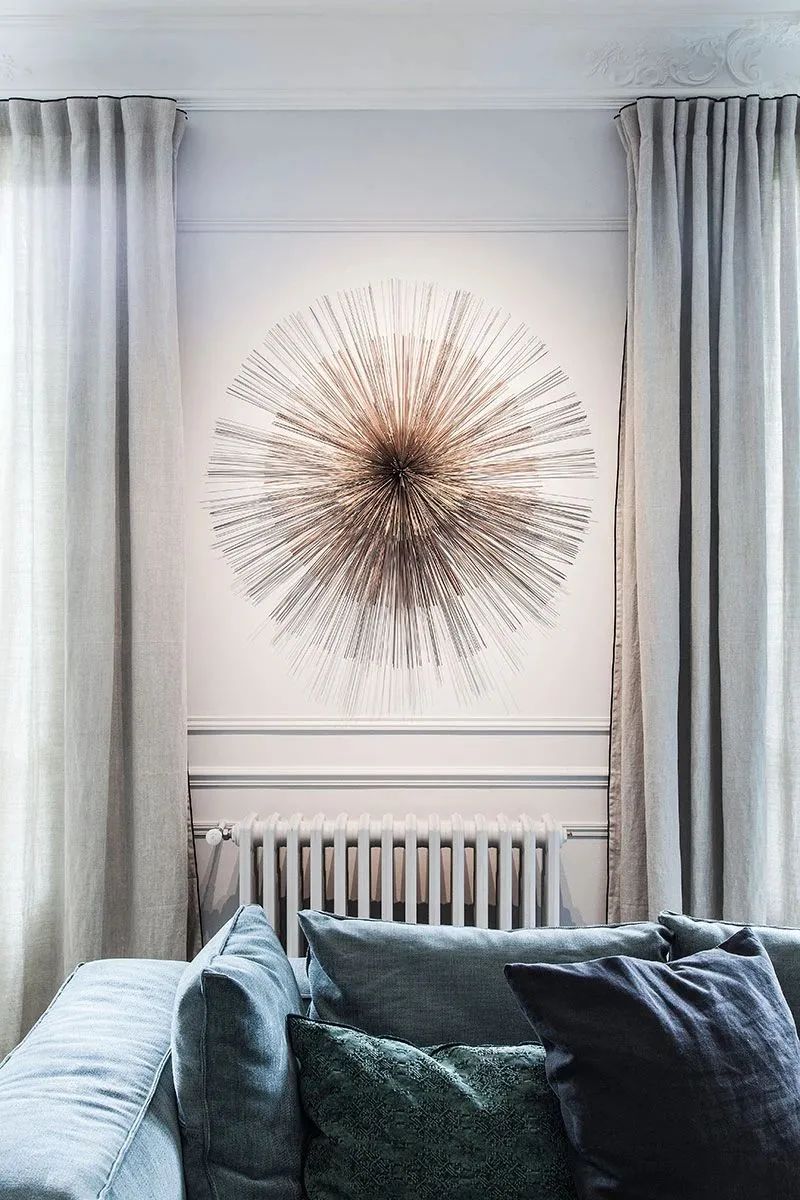 进入客厅后,便是另外一种心情,视野更加开阔,深海蓝的主色调让客厅更加稳重洒脱,绒布的材质带来了柔和色线条感,也让这里更加温馨舒适。吊灯由一个个小巧的球型组成,美观的同时,减少了空间的繁琐感。