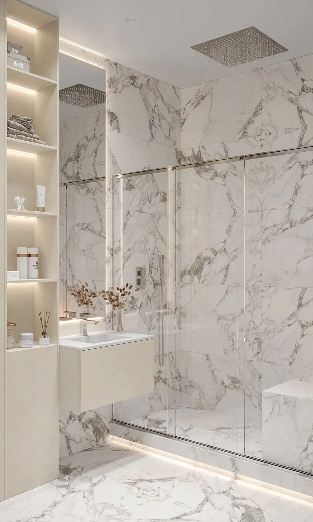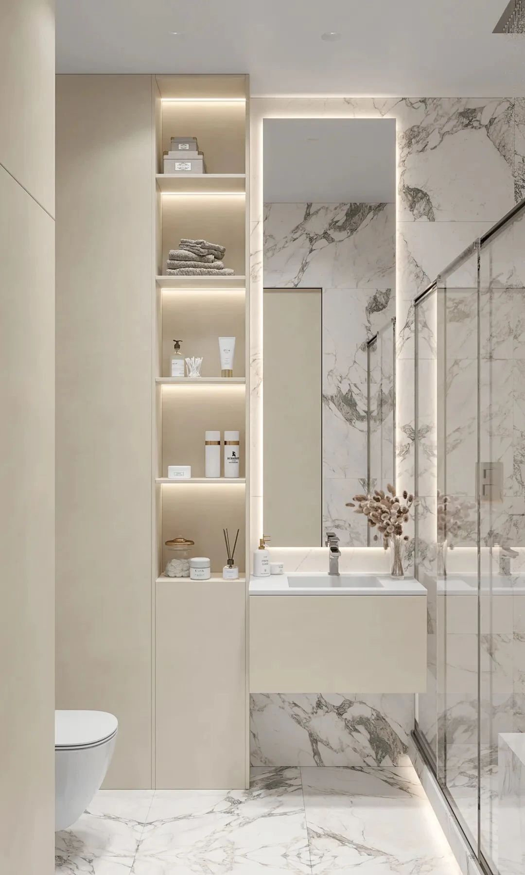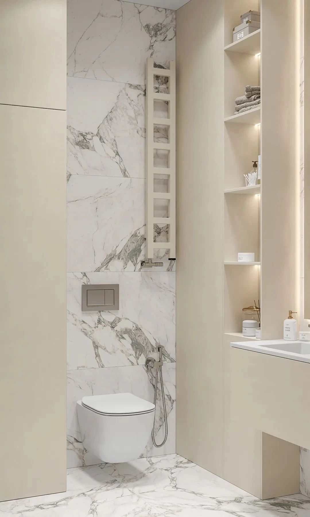 卫生间依旧延续了整体的设计风格,干湿分离的设计给人舒适的使用感受,兼具美观性与实用性,简洁的洗手台与橱柜,十分耐看。